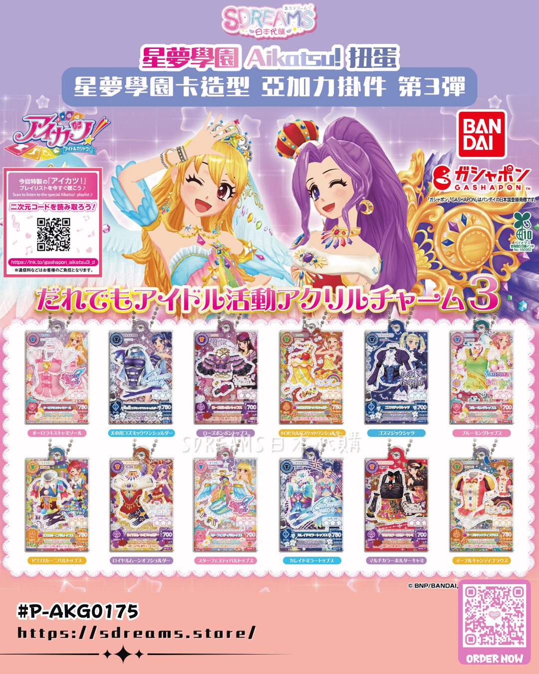 [P-AKG0175] 星夢學園 Aikatsu! 扭蛋 星夢學園卡造型 亞加力掛件 第3彈 [BANDAI] (PRE-ORDER) [2026/02]