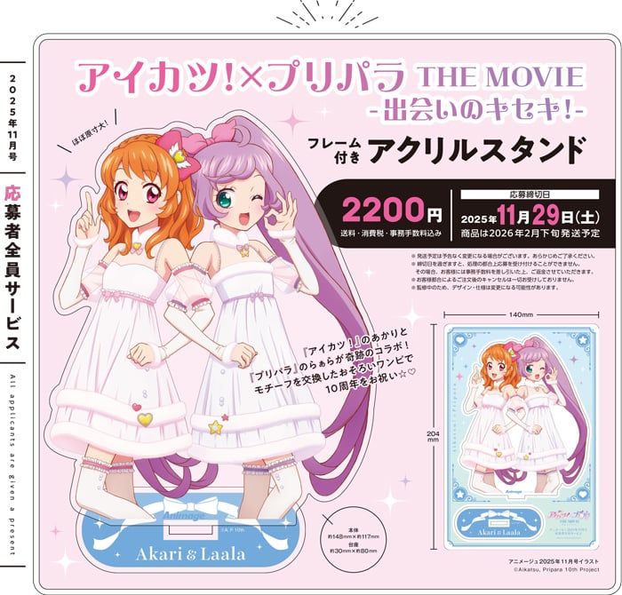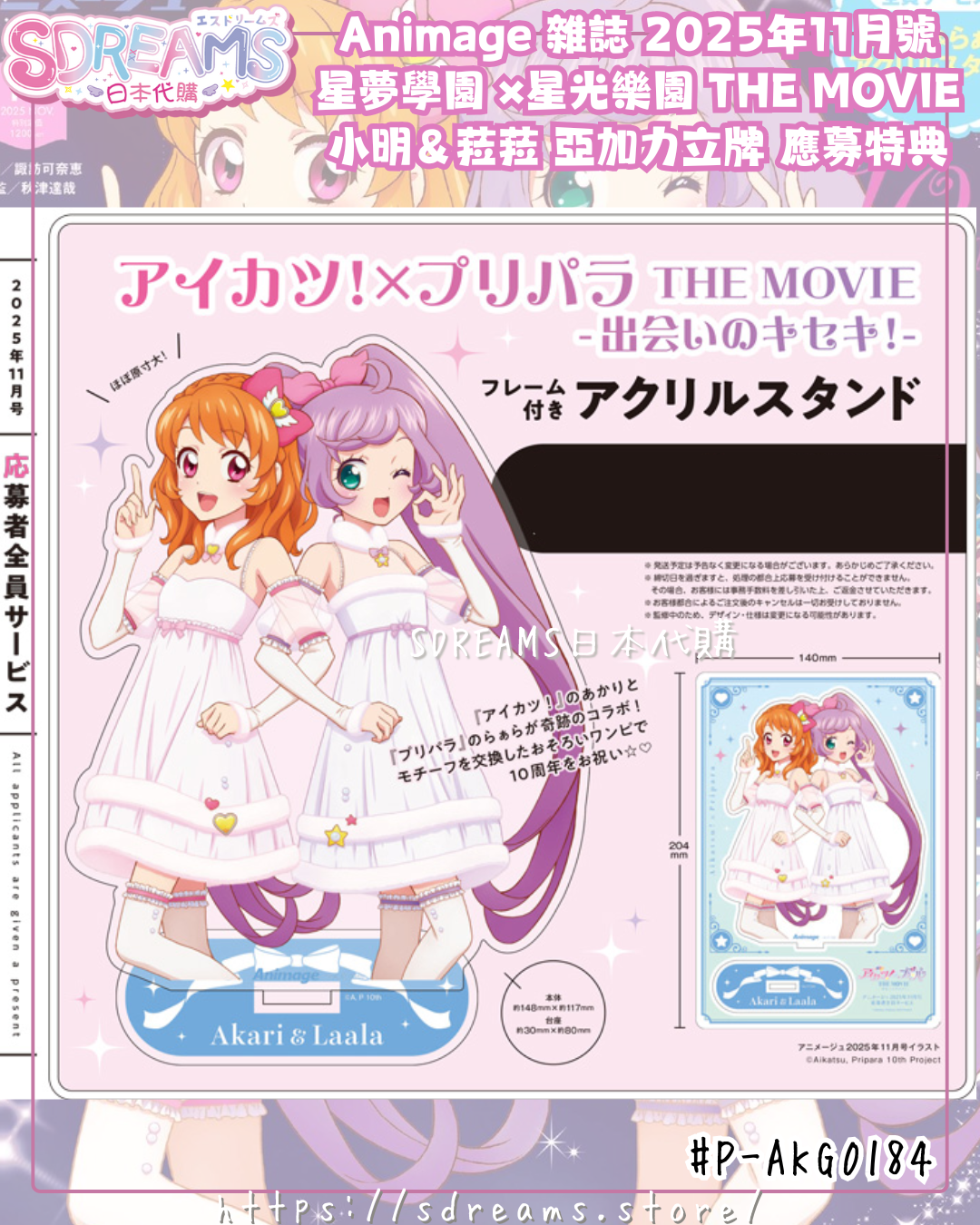 [P-AKG0184] 星夢學園 星光樂園 Animage 2025/11 "Aikatsu!" × "PriPara" THE MOVIE Akari & Lala Acrylic Stand 雜誌 大空明 菈菈 立牌 應募特典 [徳間書店] (PRE-ORDER) [2026/03]