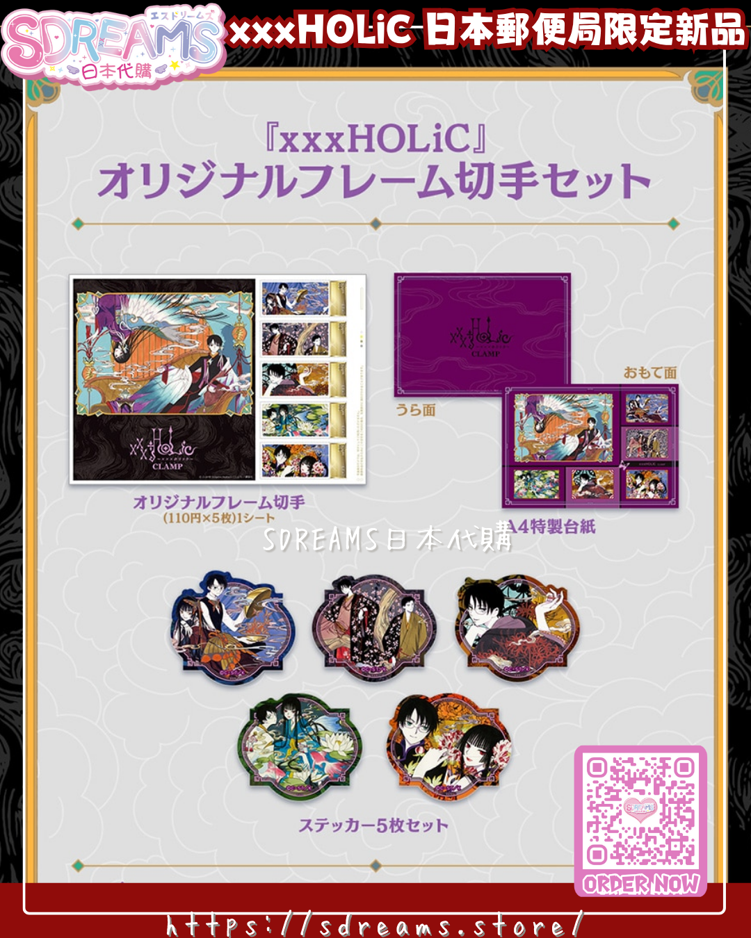 xxxHOLiC Limited Original Flame Stamp Set ・紀念郵票(110円×5枚)×1頁 ・A4特製台紙×1枚 ・限定貼紙×5枚 SIZE:A4 製造商Manufacturer:JP Post 截單截數日 DEADLINE:2025/11/26 日本預定發售月 RELEASE:2025/12 #xxxHOLiC #Clamp