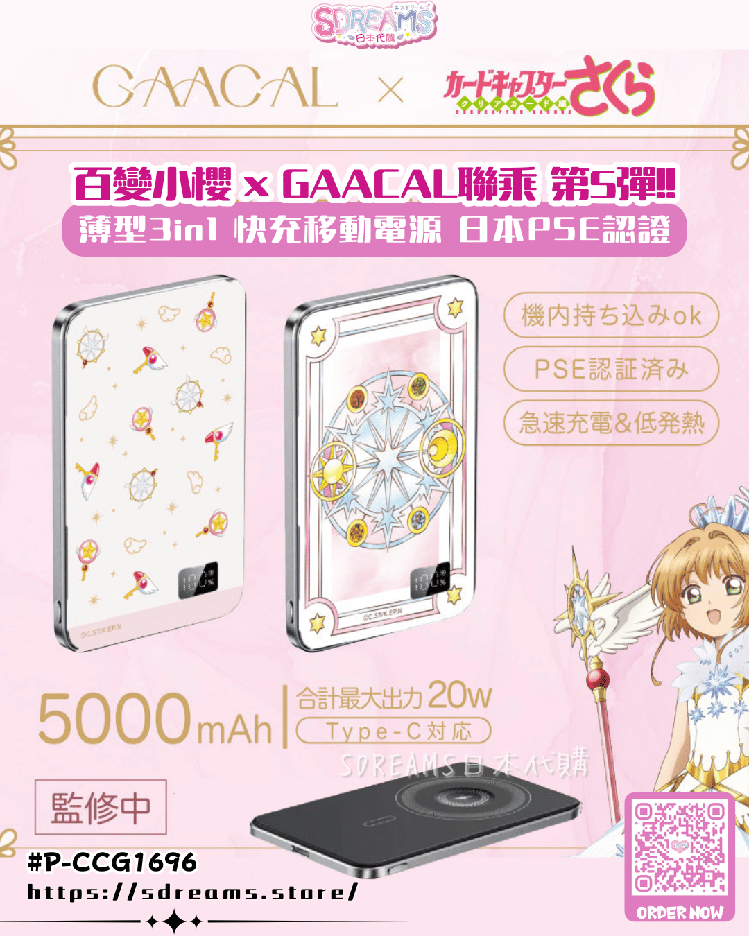 [P-CCG1696] 百變小櫻 Cardcaptor Sakura Clear Card 薄型3in1移動電源 [GAACAL] (PRE-ORDER) [2026/05]