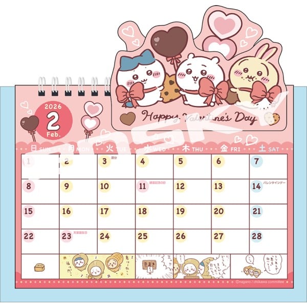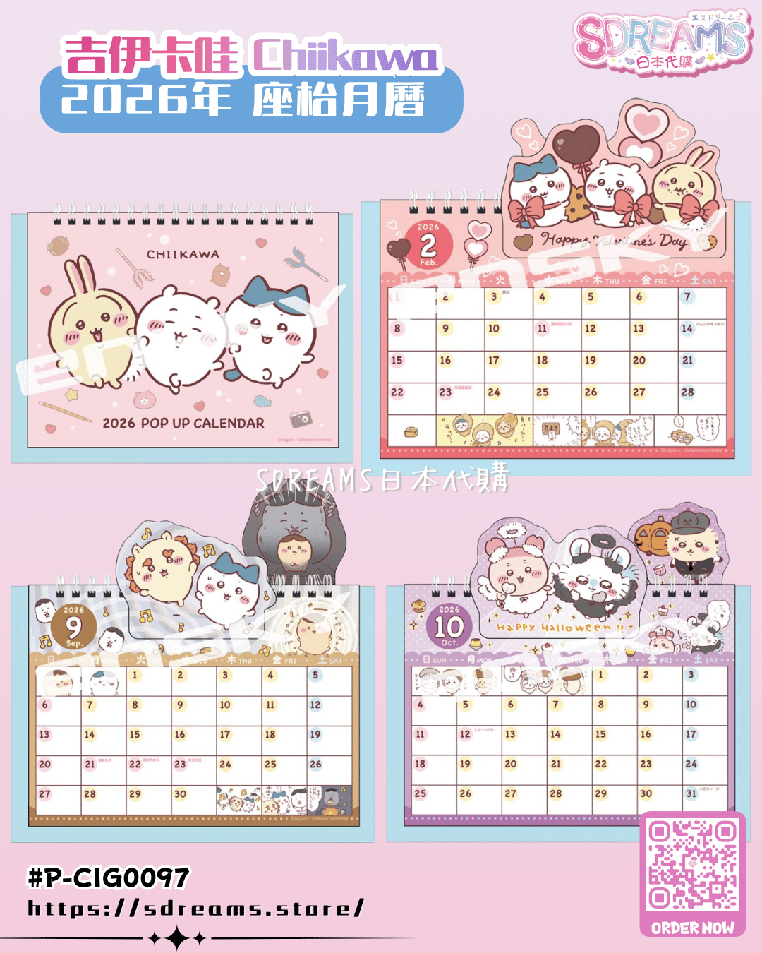 Chiikawa 2026年 Pop-up Desktop Calendar CL-074 SIZE:approx. H140 × W200mm 製造商Manufacturer:Ensky 截單截數日 DEADLINE:2025/11/30 日本預定發售月 RELEASE:2025/11 #Chiikawa #吉伊卡哇