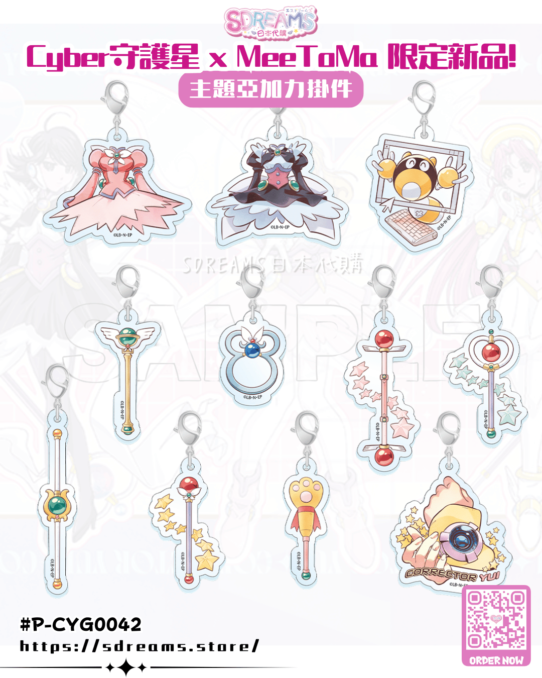 "Corrector Yui" Motif Acrylic Charm (全11款) SIZE:approx. H55 × W55mm 製造商Manufacturer:BeBlock 截單截數日 DEADLINE:2026/01/10 日本預定發售月 RELEASE:2026/04 #Cyber守護星 #網路安琪兒 #CorrectorYui