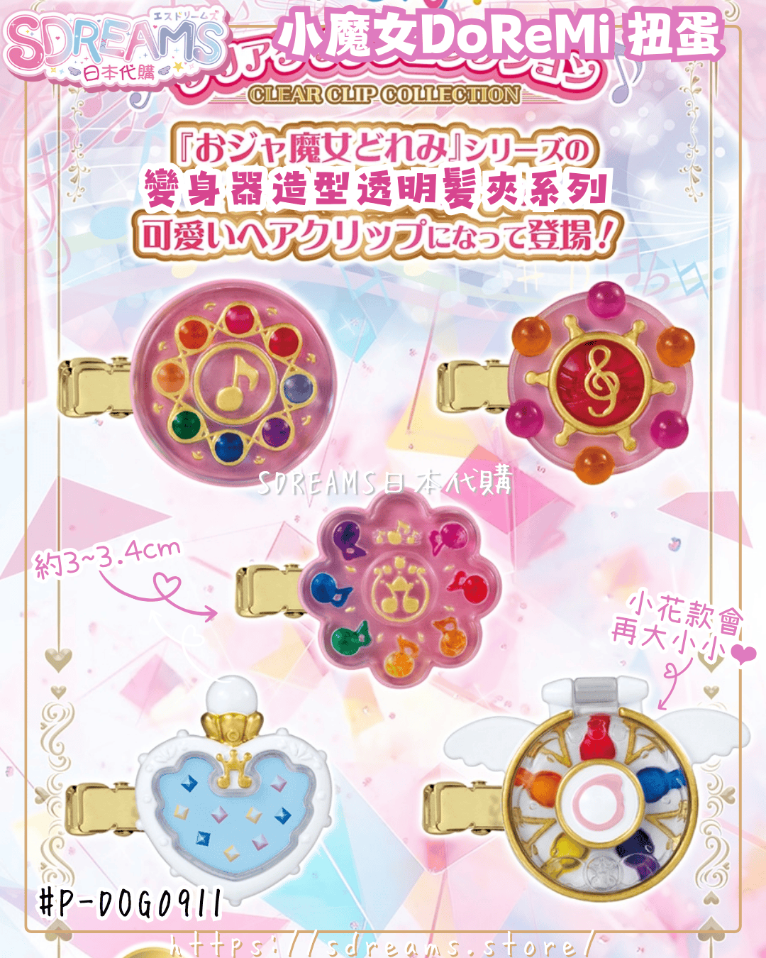 [P-DOG0911] 小魔女DoReMi "Ojamajo Doremi" Clear Clip Collection 扭蛋 變身器 髪夾 (5 Types) [BANDAI] (PRE-ORDER) [2026/02]
