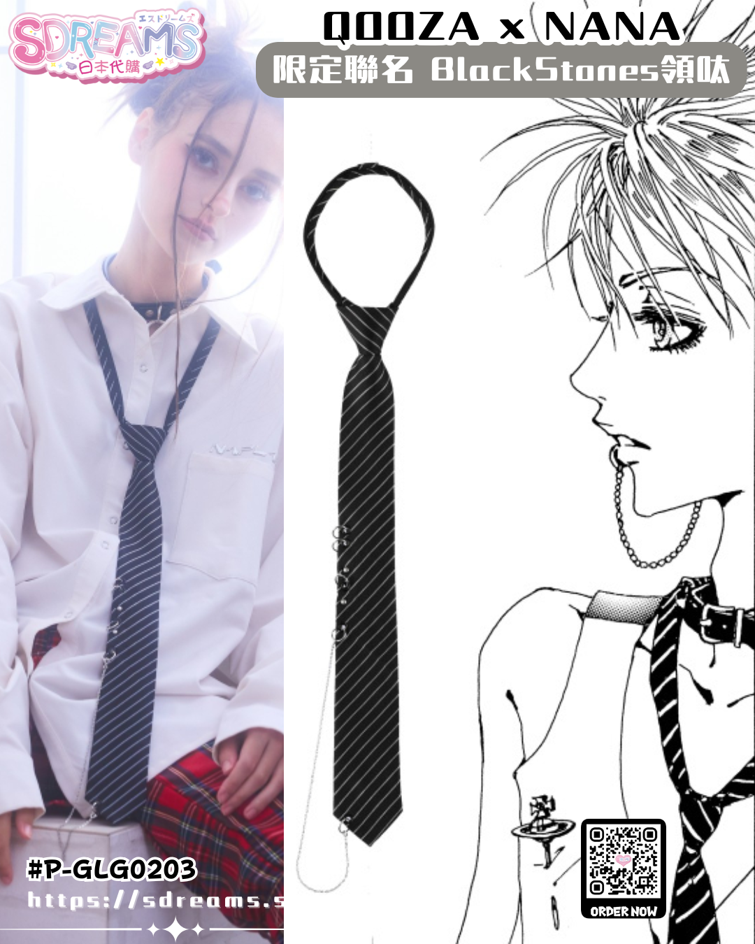 [P-GLG0203] QOOZA × NANA / Black Stones 領呔 領帶 [QOOZA] (PRE-ORDER) [2025/12]