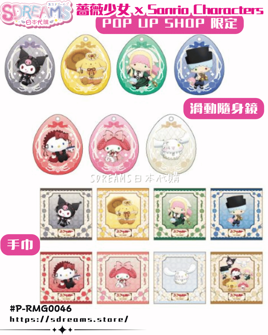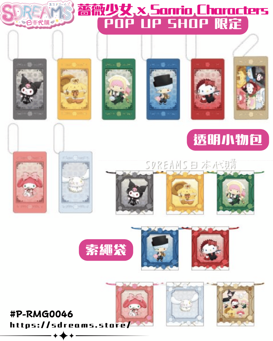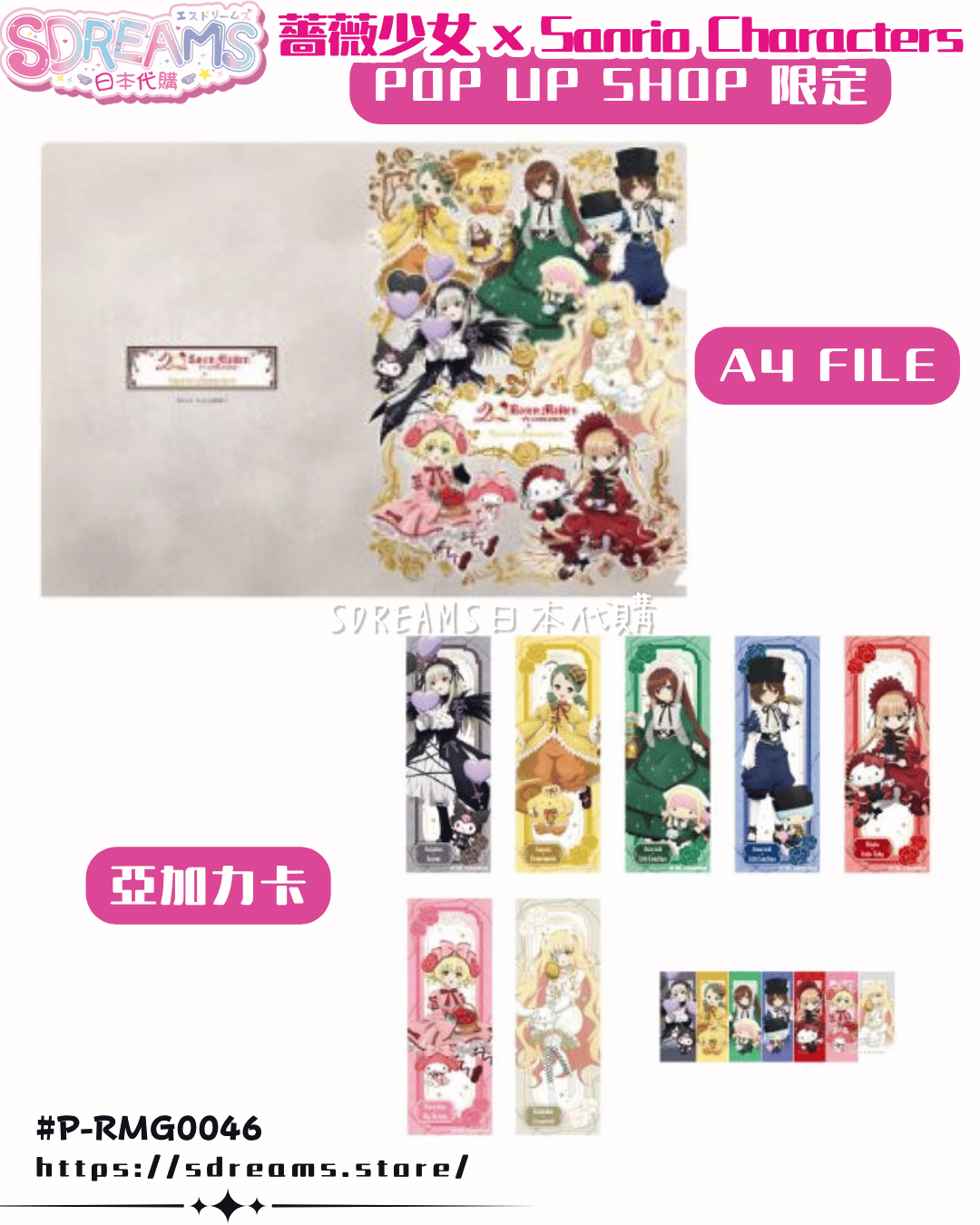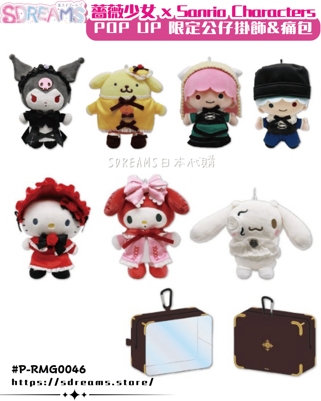 [P-RMG0046] 薔薇少女 × Sanrio Characters POP UP SHOP 限定周邊 公仔掛飾 痛包 File [medicos] (PRE-ORDER) [2025/12]