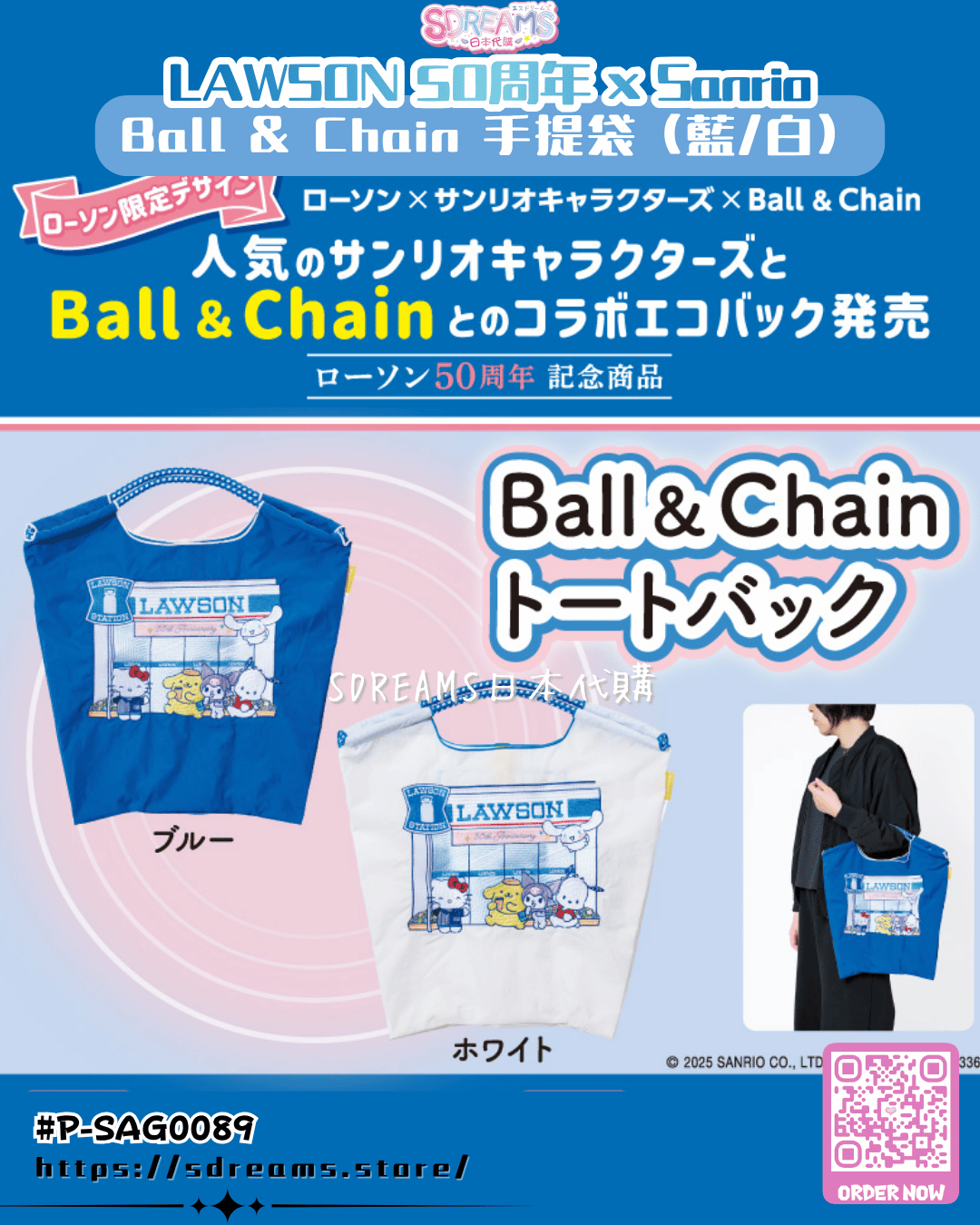 [P-SAG0089] LAWSON50周年 × Sanrio Characters Ball & Chain 手提袋 [LAWSON] (PRE-ORDER) [2026/01]