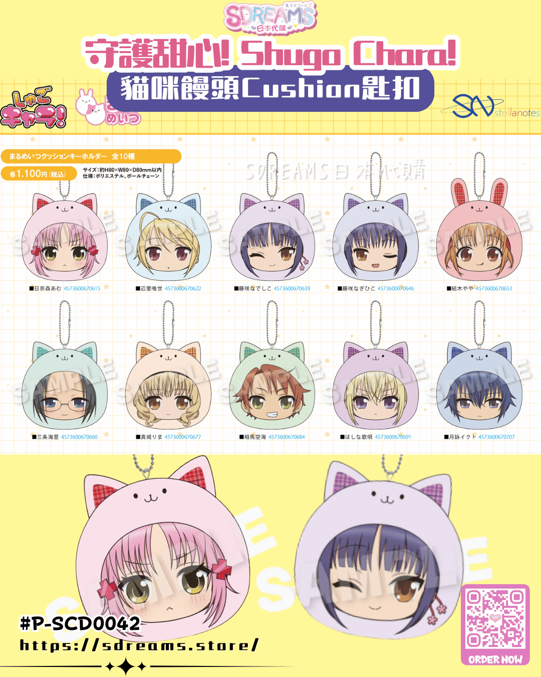 守護甜心! 貓咪咕𠱸匙扣 (全10款) "Shugo Chara!" Marumeitsu Cushion Key Holder SIZE:approx. H80 × W80 × D80mm 製造商Manufacturer:stellanotes 截單截數日 DEADLINE:2025/12/21 日本預定發售月 RELEASE:2026/01 #守護甜心 #ShugoChara