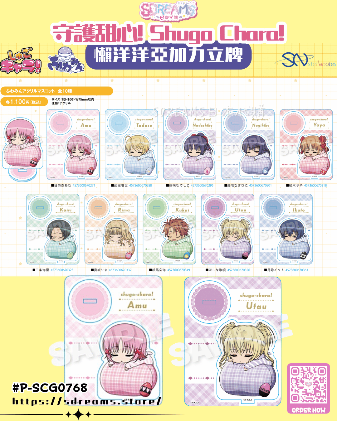"Shugo Chara!" Fuwamin Acrylic Mascot (全10款) SIZE:approx. H148 × W100mm 製造商Manufacturer:stellanotes 截單截數日 DEADLINE:2025/12/21 日本預定發售月 RELEASE:2026/01 #守護甜心 #ShugoChara