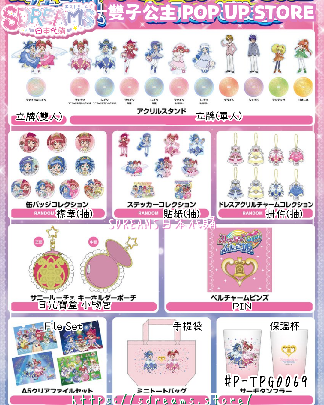 [P-TPG0069]《雙子公主》"Twin Princesses" POP UP STORE in Tree Village 立牌 襟章 貼紙 掛件 小物包 PIN File 手提袋 保溫杯 (PRE-ORDER) [2025/11]