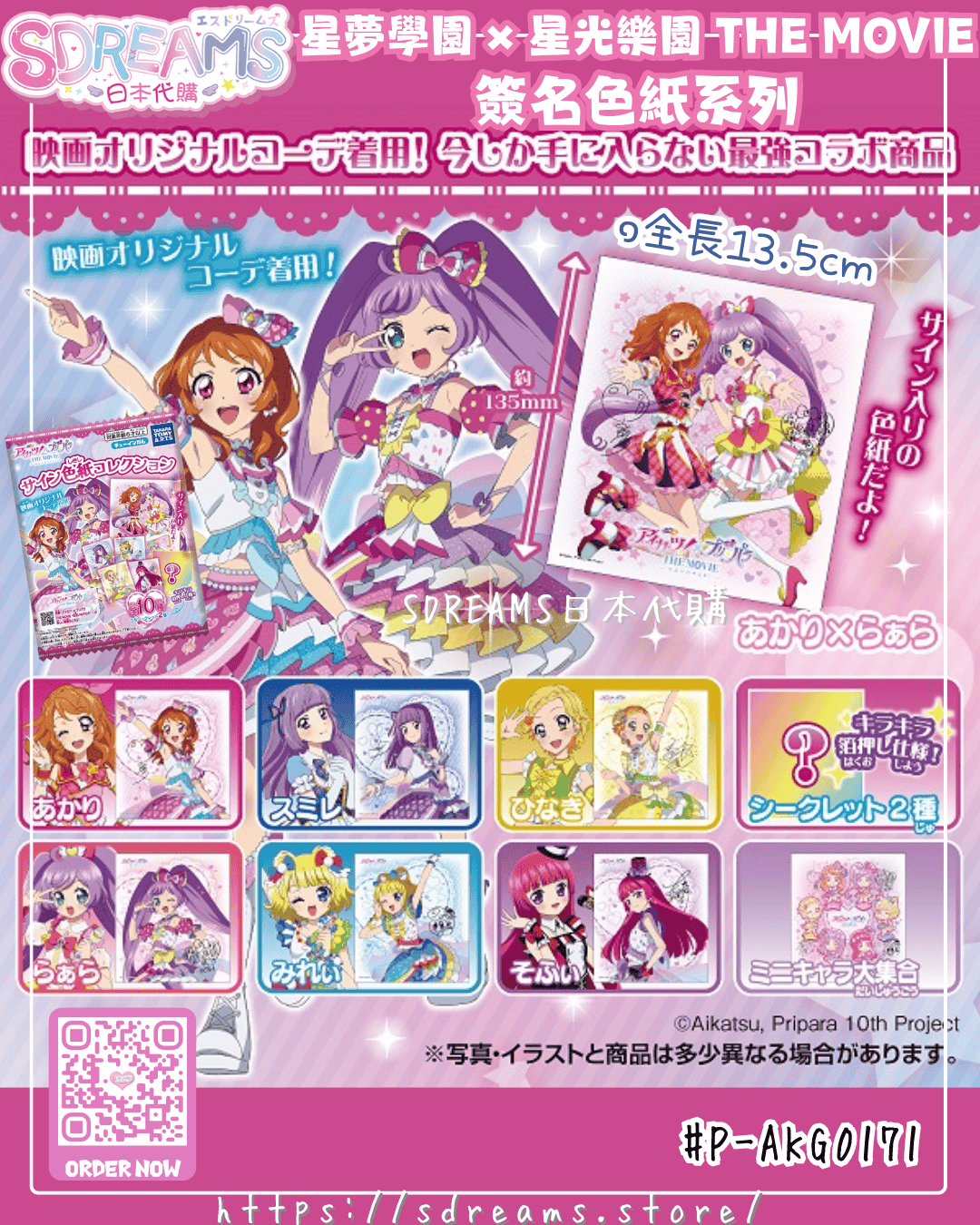 "Aikatsu! PriPara" THE MOVIE Sign Shikishi Collection (全10款) SIZE:approx. H135 × W120mm 製造商Manufacturer:Takaratomy Arts 截單截數日 DEADLINE:2025/11/03 日本預定發售月 RELEASE:2025/11 #Aikatsu #星夢學園 #Pripara #星光樂園