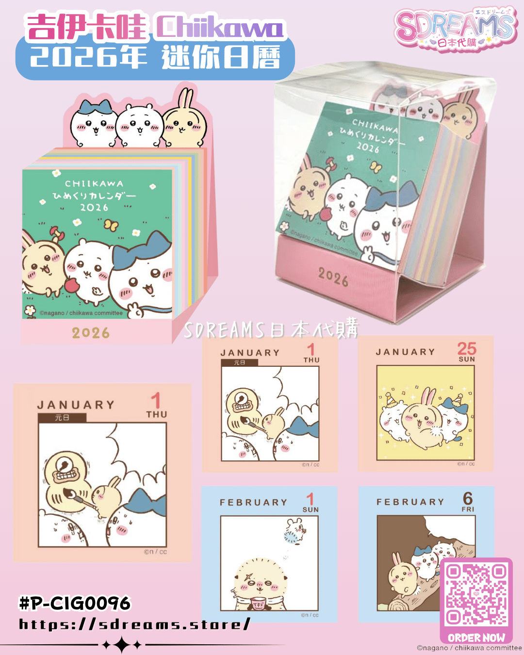 Chiikawa 2026年 Calendar Miniature Daily Calendar SIZE:approx. H80 × W60mm 製造商Manufacturer:ART PRINT JAPAN 截單截數日 DEADLINE:2025/11/30 日本預定發售月 RELEASE:2025/11 #Chiikawa #吉伊卡哇