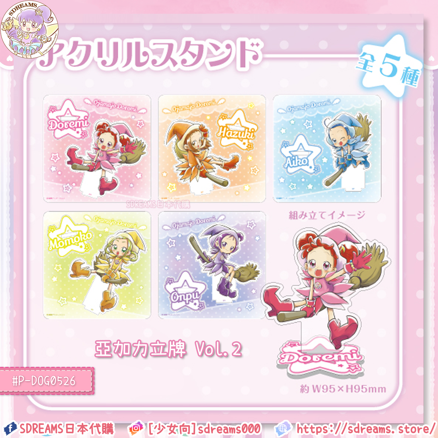 [P-DOG0526]《小魔女DoReMi》Village Vanguard × "Ojamajo Doremi" Acrylic Stand vol.2 (5 Types) (PRE-ORDER) [2024/04]