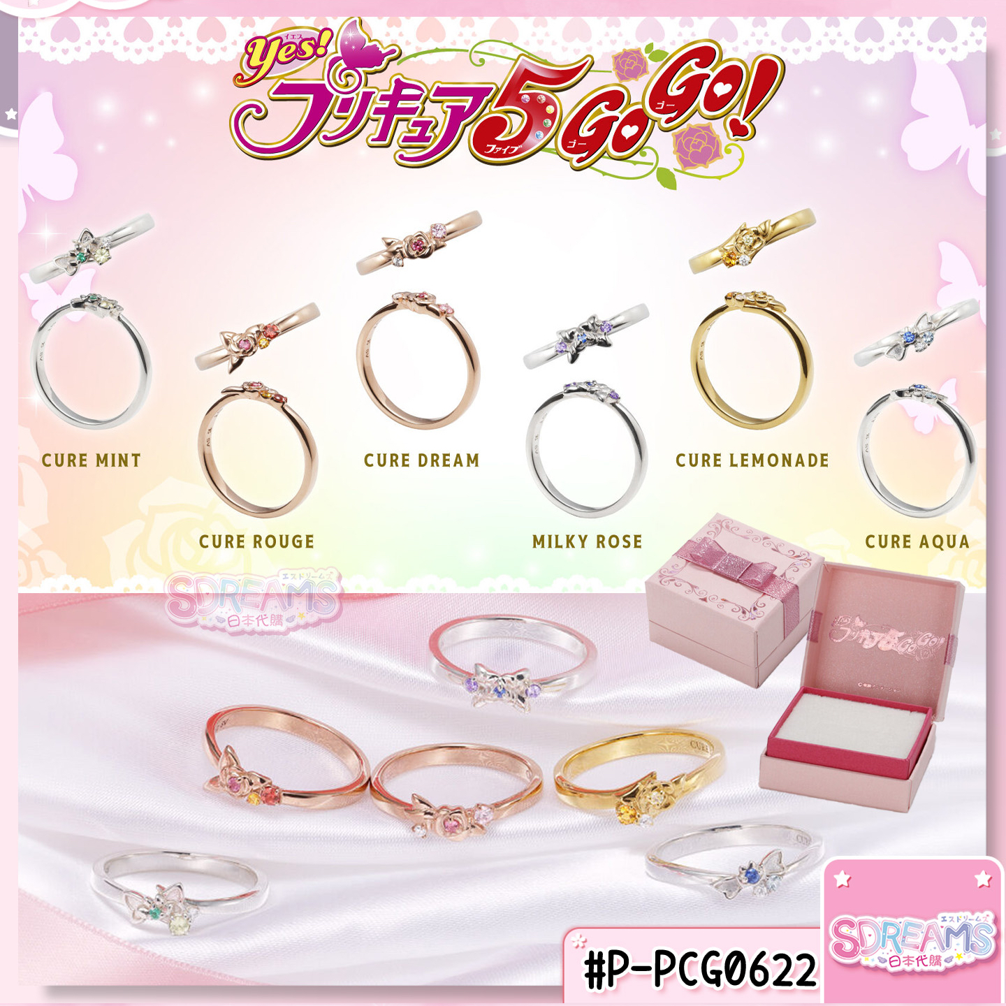 YES! 光之美少女5GoGo! × THE KISS 925銀 蘇聯鑽戒指 (全6款) 🩷🧡💛童年回憶化身夢幻首飾💚💙💜 YES!5 6位Pretty Cure將推出夢幻銀戒指! 💍每款戒指以角色髮飾和服裝為設計靈感 💎鑲嵌角色主題色的寶石,細節滿分! ✨完美呈現每位戰士的專屬色彩 🌈 📏提供5個尺寸可選(5/7/9/11/13),總有一個尺寸選合自己! 🎁訂購戒指更附送精美收藏盒! 【尺寸】 SIZE ... 7/9/11/13/15 Cure Dream ... 約2.2x1.2mm(寬x厚) Cure Rouge ... 約2.2x1.2mm(寬x厚) Cure Lemonade ... 約2.2x1.2mm(寬x厚) Cure Mint ... 約2.2x1.2mm(寬x厚) Cure Aqua ... 約2.2x1.0mm(寬x厚) Milky Rose ... 約2.2x1.2mm(寬x厚) 【物料】 Cure Dream ... SV925銀(鍍玫瑰金)、Nanogems、蘇聯鑽 Cure Rouge ... SV925銀(鍍玫瑰金)、Nanogems Cure Lemonade ... SV925銀(鍍金)、Nanogems、蘇聯鑽 Cure Mint ... SV925銀、Nanogems、蘇聯鑽 Cure Aqua ... SV925銀、Nanogems、蘇聯鑽 Milky Rose ... SV925銀、Nanogems、蘇聯鑽、Nanogems ※Nanogems是採用先進技術由陶瓷晶體和玻璃製成的人造寶石。 售價 Price:¥13200 (稅込) 製造商Manufacturer:BANDAI 截單截數日 DEADLINE:2025/02/01 預定發售月 RELEASE:2025/05 預定到貨月 AVAILABLE:2025/06 #光之美少女 #PrettyCure #Precure