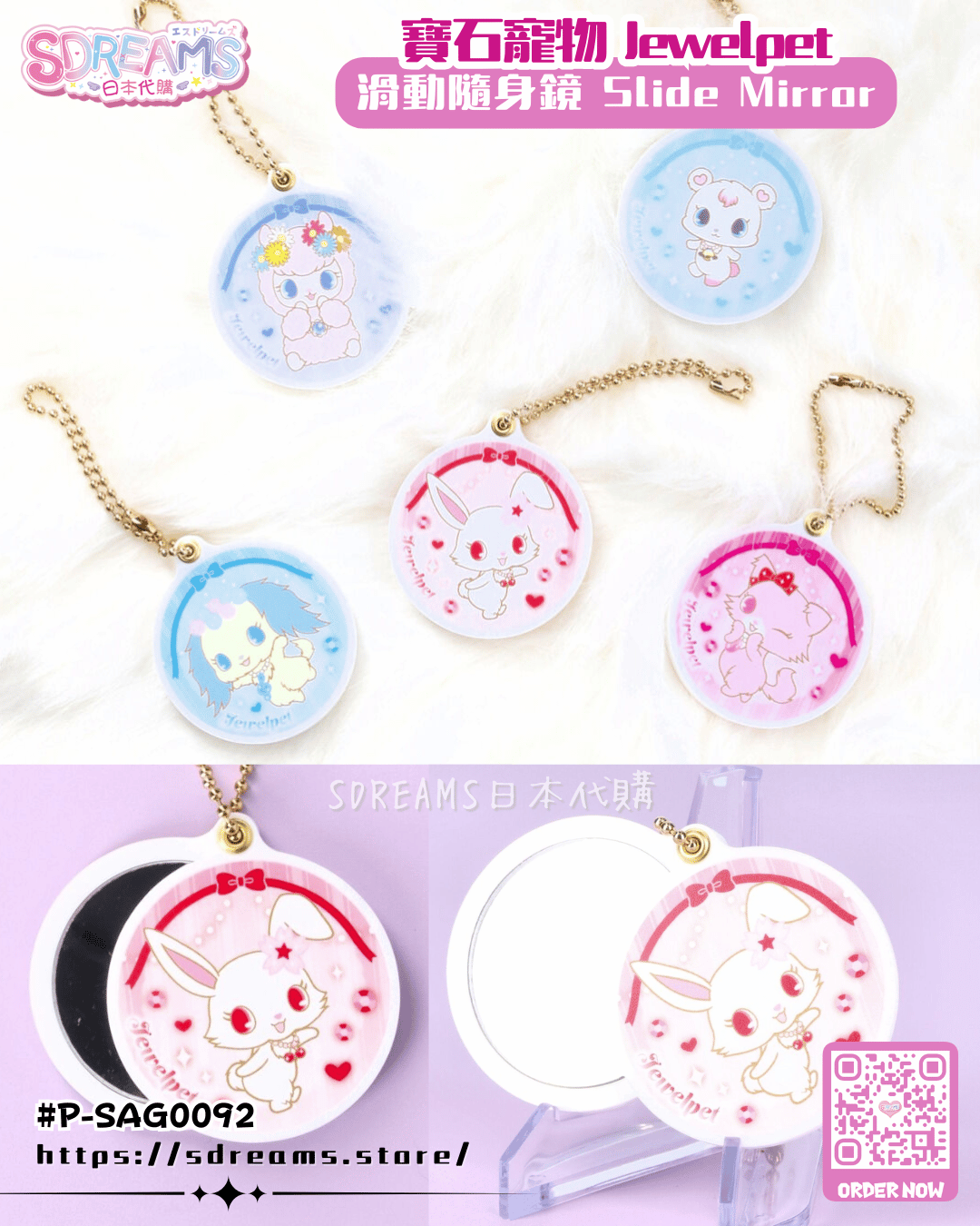[P-SAG0092] 寶石寵物 Jewelpet 滑動隨身鏡 [BANDAI] (PRE-ORDER) [2026/03]