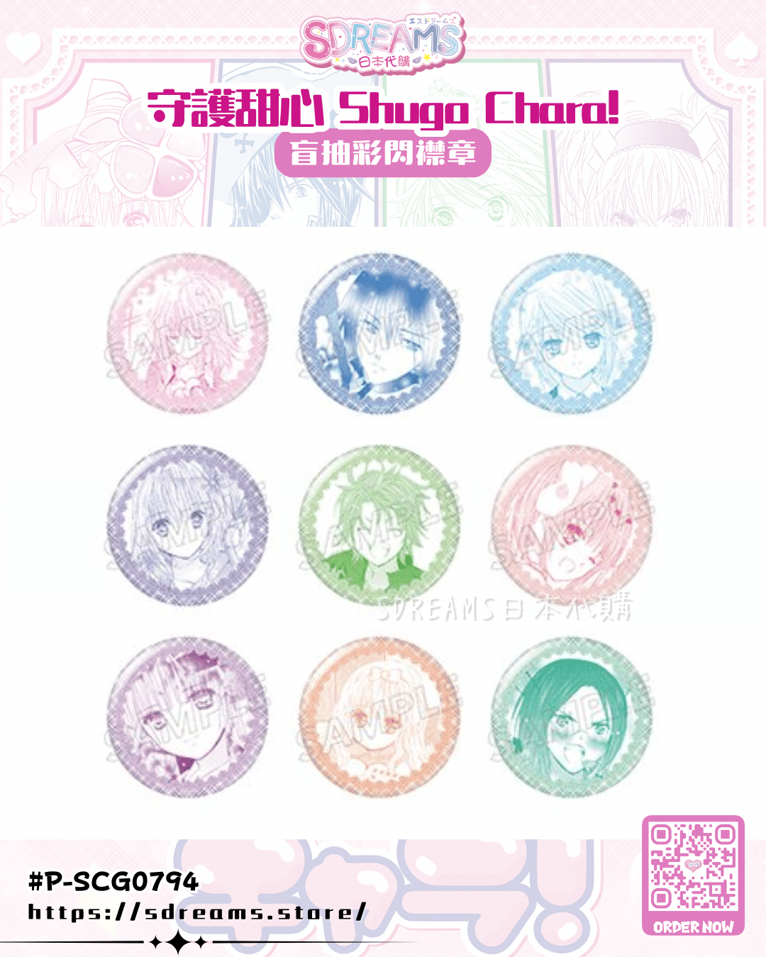 "Shugo Chara!" Animega POP UP SHOP Trading Glitter Can Badge (全9款) SIZE:approx. 56Φmm 製造商Manufacturer:EDITH 截單截數日 DEADLINE:2026/01/06 日本預定發售月 RELEASE:2026/01 #守護甜心 #ShugoChara