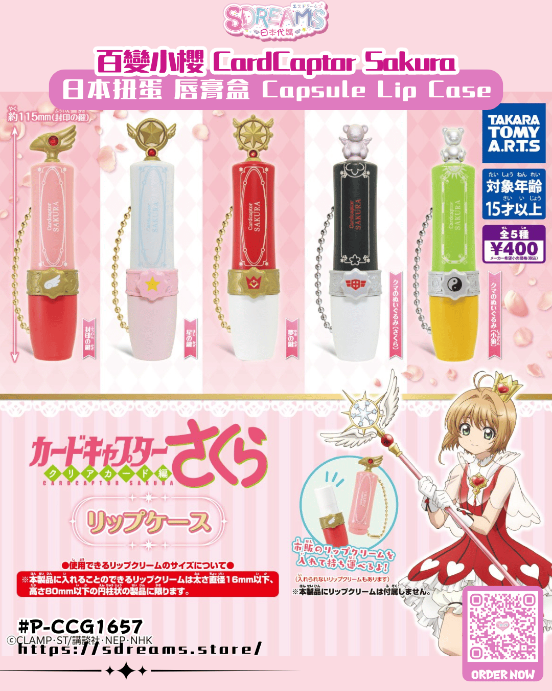 百變小櫻 扭蛋 唇膏盒 (全5款) "Cardcaptor Sakura" Capsule Lip Case .封印之匙 .星之匙 .夢之匙 .小櫻定情熊 .小狼定情熊 製造商Manufacturer:TakaraTomyArts 預訂截單截數日 DEADLINE:2025/10/08 日本預定發售月 RELEASE:2026/01 #百變小櫻 #庫洛魔法使 #CardcaptorSakura #Clamp