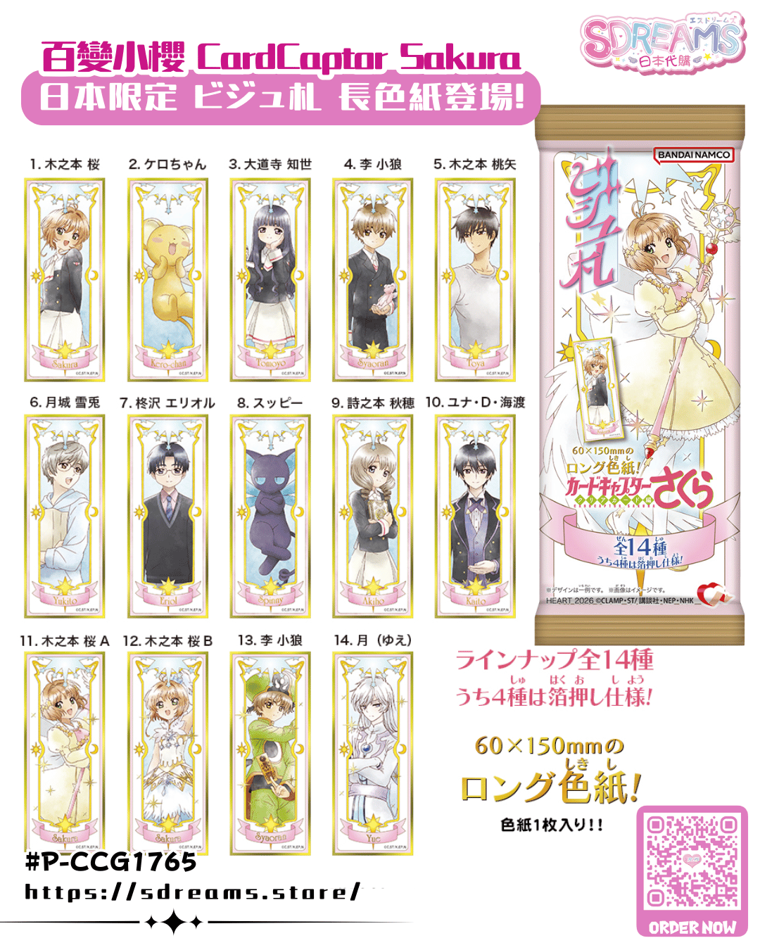 "Cardcaptor Sakura" Visual Ticket 全14種 / 原盒12包 / 每包隨機1張 SIZE:approx. H150 × W60mm 製造商Manufacturer:Heart 預訂截單截數日 DEADLINE:2026/01/31 日本預定發售月 RELEASE:2026/04 #百變小櫻 #庫洛魔法使 #CardcaptorSakura #Clamp